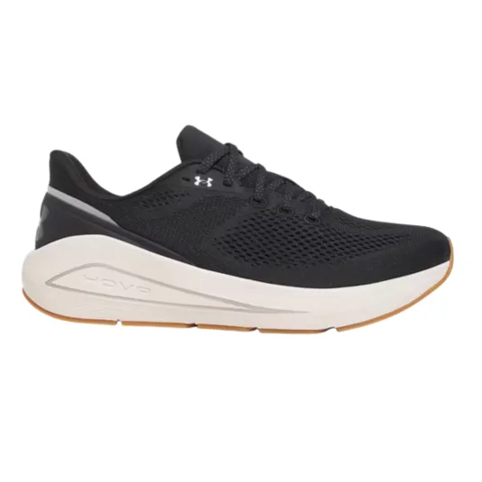Under Armour black running shoe with white logo and accents, featuring a breathable mesh upper and cushioned sole.