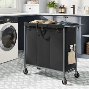 This Rolling Three-Section Laundry Hamper from Songmics drops from $79.98 to $55.99 when you enter our exclusive code BDLBW30 at checkout. It sells elsewhere for $73. Shipping is free. The 200-liter cart has a steel frame, tear-resistant Oxford fabric, removable liner, four wheels, and a storage pocket. It measures 35.8" x 15.3" x 31.8" and comes in the colors White, Gray, and Black.