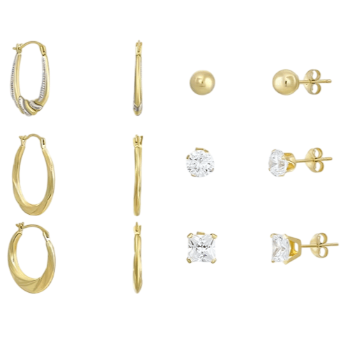 14K Gold 6 Pair Earring Set